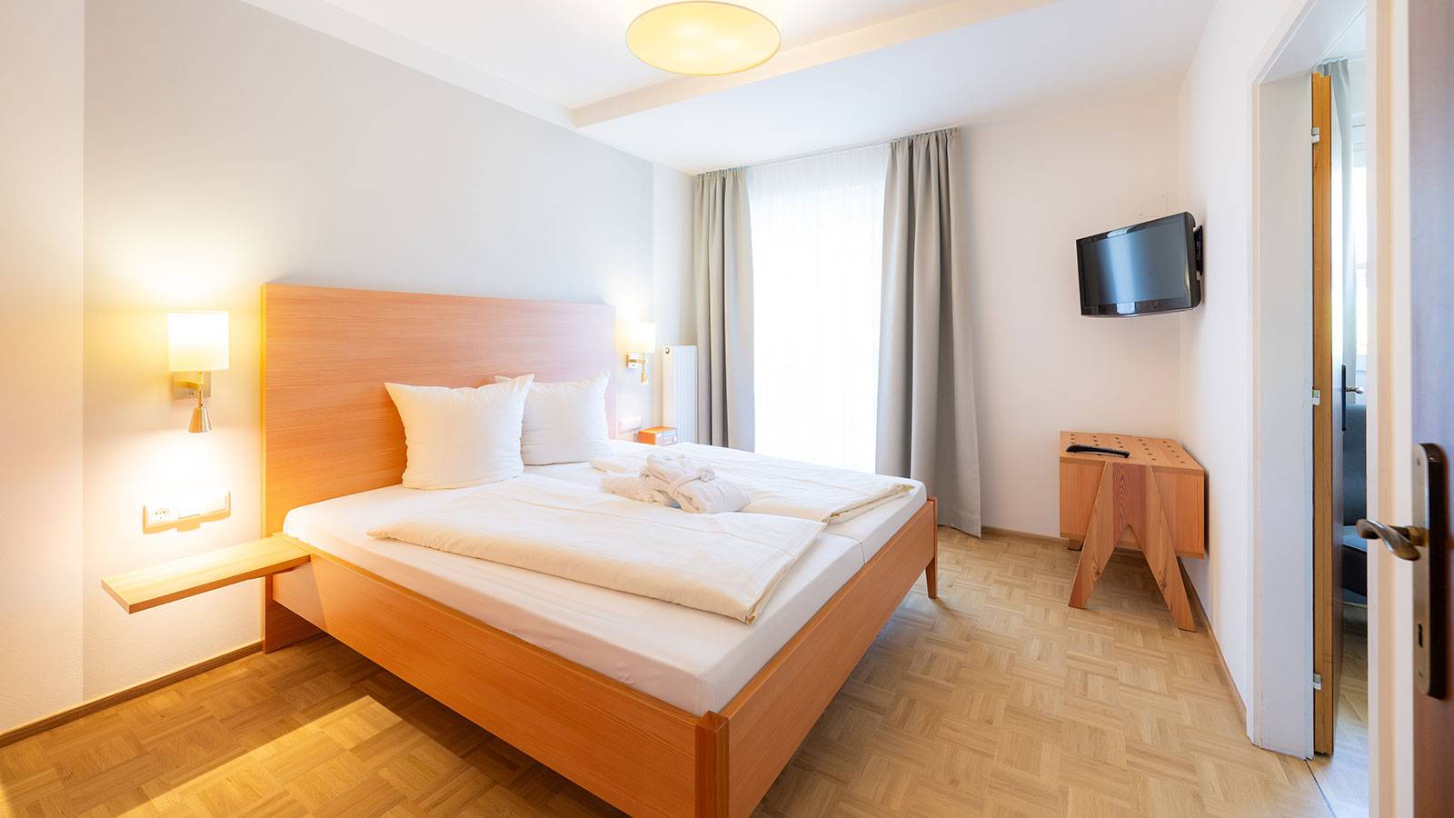 Das Apartment bietet ausreichend Platz für zwei Personen und überzeugt durch einen getrennten Schlaf- und Wohnbereich – ideal für einen erholsamen Urlaub am See. Die zur Promenadenseite gelegenen Apartments verfügen über einen Balkon, auf dem Sie entspannt die Atmosphäre genießen können – perfekt für laue Abende oder einen ruhigen Morgenkaffee. Die zahlreichen Annehmlichkeiten eines 4-Sterne-Hotels sind als Inklusivleistungen im Preis enthalten.